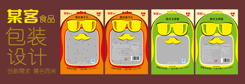 【设计思路】:以某客的logo为创新原形,采用时下流行的“愤怒的小鸟”造型思路,将产品卡通化造型强化,让产品在货架上能凸显出来,符合消费人群的审美习惯。慧网认为,我们所做每一个件都是慧网的形象,与发展息息相关。这次设计打破了熟食产品色彩乱、无造型、元素乱的风气,重新定义了风旺品牌和产品形象。