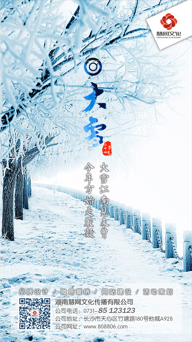 在每一个节气来临之际,我们慧网文化急客户所急,想客户所想,为每个客户量身定制一个又一个格调不俗的微信朋友圈海报:在每个客户各自微信公众平台对所有粉丝进行图片推送,给予慧网客户们对于粉丝朋友们的无限关怀,同时以温柔创意的方式达到提升客户品牌形象的目的。配上各自定制的分享文字,无论是微信群发还是转发微信朋友圈,既表达了对朋友圈好友的关怀,又达到各自所属行业再次刷屏,其品牌知名度也得到再一次曝光。