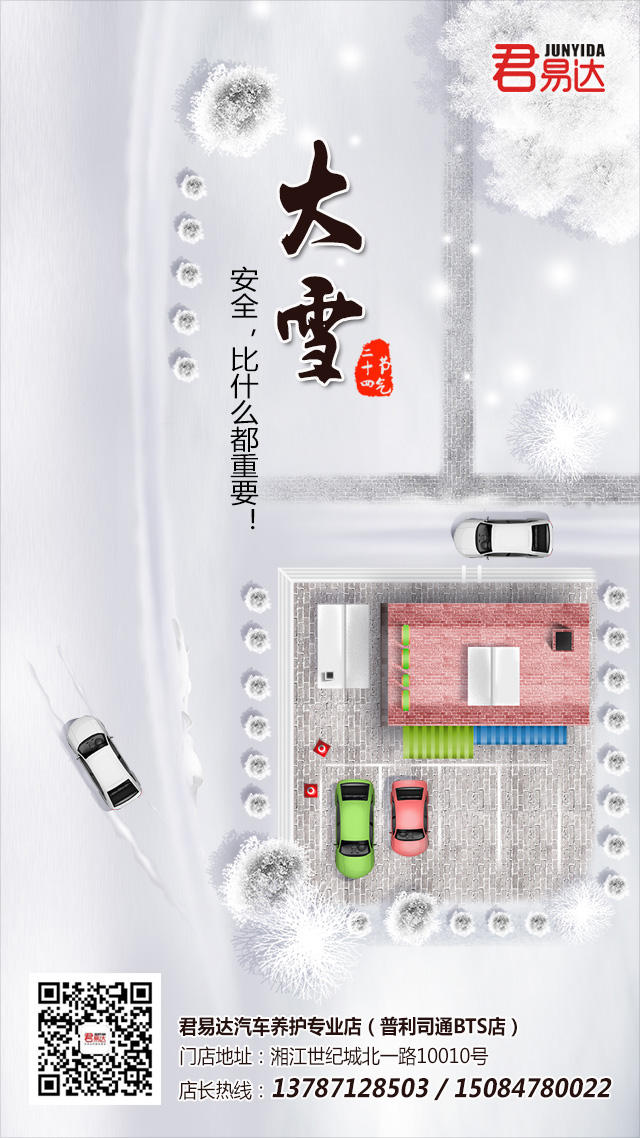 大雪时节,天气寒冷,交通无小事,爱车常检查,君易达车管家永远关怀着您,安全,比什么都重要!