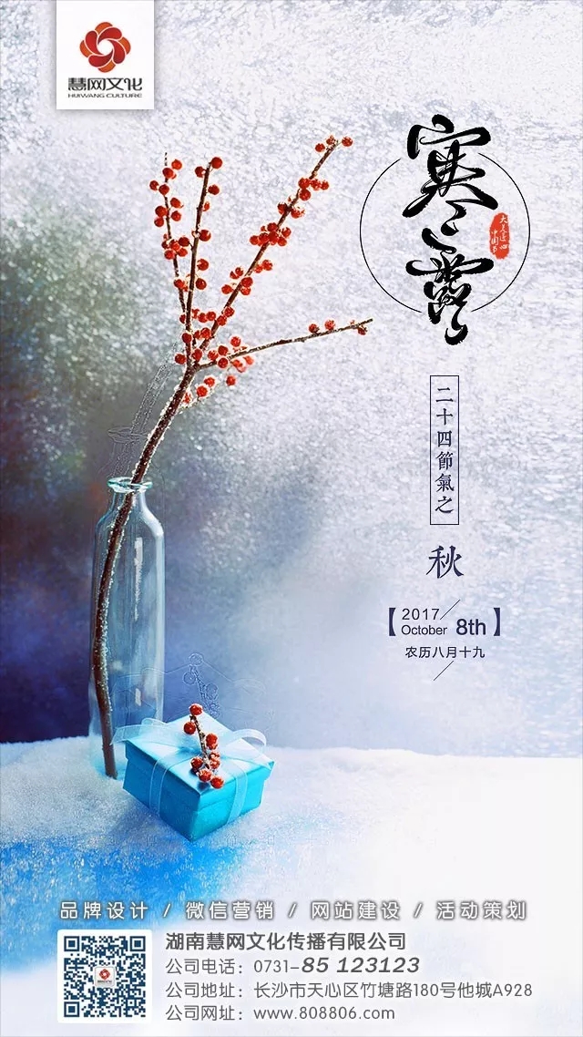 在每一个节气来临之际,我们慧网文化急客户所急,想客户所想,为每个客户量身定制一个又一个格调不俗的微信朋友圈海报:在每个客户各自微信公众平台对所有粉丝进行图片推送,给予慧网客户们对于粉丝朋友们的无限关怀,同时以温柔创意的方式达到提升客户品牌形象的目的。配上各自定制的分享文字,无论是微信群发还是转发微信朋友圈,既表达了对朋友圈好友的关怀,又达到各自所属行业再次刷屏,其品牌知名度也得到再一次曝光。
